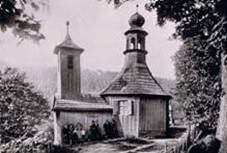 kamenné podezdívce. Nevelká Kaplička P.Marie Lurdské V lese východně od vsi, 1901 Socha Nejsv.Trojice