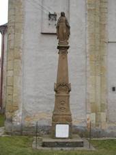 střechou, obnovena 1720, kulturní památka Hřbitov V dolní části obce, původní kolem kostela zrušen Socha P.Marie Mezi věžemi kostela, 18.stol.