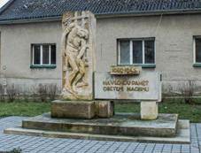 dílo sochaře L. Beneše. Nápis: 1939-1945 / NA VĚČNOU PAMĚŤ / OBĚTEM NACISMU