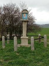 Boží muka Kamenná v polích k Horní Slatině. Svatý obrázek Na křižovatce
