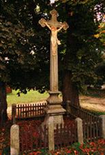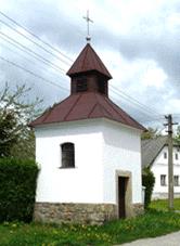 Lísky Kaple Nanebevzetí P.Marie 1910 Zvonička U kaple Kamenný kříž Na návsi