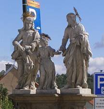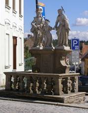 s nímž spolupracoval kameník Frant. Neuwirt. Socha P. Marie Immaculaty Na vrcholu oblakového sloupu stojí na zeměkouli Socha sv.Jana Nepomuckého