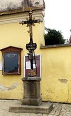 při křižovatce s ul. Na Hrázi, z r.1480 Boží muka u silnice