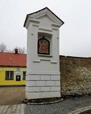 Telč-Vnitřní Město Děkanství náměstí Zachariáše z Hradce č.p.4 Výklenková kaplička – poklona na hrázi Štěpnického rybníka blíž