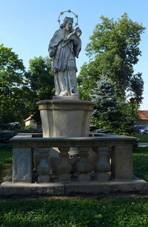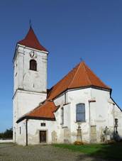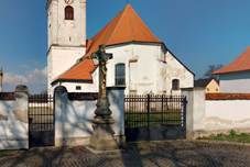 Kostel sv.Jana Křtitele Pův.románský 1220-30, přestavěn pozdně barokně 1760-90 Fara Č.p.4