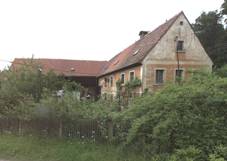 nad meandrem Smědé nad domy čp. 69, 35 a 70 Hostinec č.p.4 Zdroj C) S hrázděným