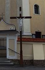 kříž před kostelem vedle kapličky u zadního vstupu Kamenný kříž Centrální na hřbitově