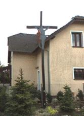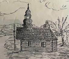 z Koutů u Kravař ve slohu románsko - moderním. [Kaplička] Před stavbou kostela sv.Viléma, na návsi Fara
