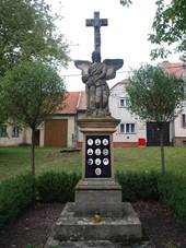Nepomuckého Na západním okraji vsi Kamenný kříž Před kostelem, 1768 Kamenný kříž U mlýna Kamenný kříž U silnice na Dřevěný kříž JZ od kostela Erb Nad vchodem kostela Památník padlým Na návsi Jubilejní kámen Knížete Jana II.z