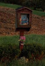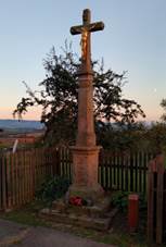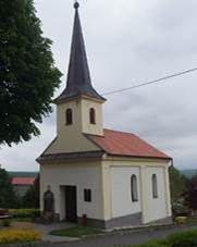 Kaple sv. Floriana z r. 1877 uprostřed návsi. Kamenný kříž Před kaplí Kamenný kříž Před č.p.51 Kamenný kříž Proti č.p. 45 z r. 1752.