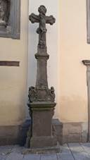 Křížem, od 2001 před špitálem na ul.Palackého Kamenný kříž Před