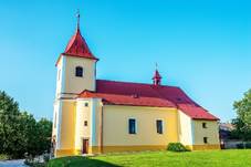Kostel Narození P.Marie Údajně přestavbou středověké tvrze Fara … Hřbitov Jižně od kostela Kamenný kříž Před Mateřskou školou