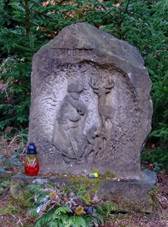 Reliéf sv.Huberta V lese jihovýchodně od vsi u
