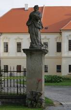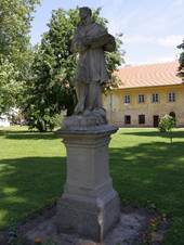 Na náměstí, 2. třetiny 18. století Socha sv. Pavla Zdroj C) V areálu kláštera Socha sv. Petra Zdroj C) V areálu kláštera Socha sv. Jana Nepomuckého Zdroj C) V areálu kláštera Socha sv. Benedikta Zdroj C) V areálu kláštera Socha Karla Boromejského