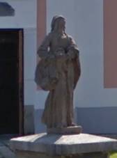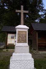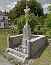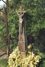 Socha Jana Evangelisty Na ohradní zdi kolem kostela Socha Bolestné P.Marie Na ohradní zdi kolem kostela Kamenný kříž Centrální na hřbitově Kamenný kříž 1875