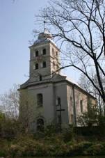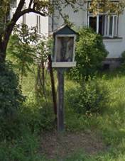 (Breitenfurt) Kostel Povýšení sv. Kříže z roku 1825 Fara 1890, v současnosti zdevastována