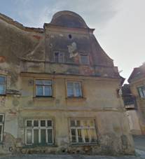 Pivovarská ul. Měšťanský dům č.p.164 Školní ul., zdevastovaná fasáda,
