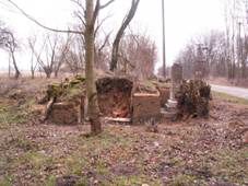 (Kaschnitzberg) [Kaple sv.Floriána] Zdroj D) Kol 1885 Kamenný kříž Zdroj D) Torzo u zbořené kaple, na místě