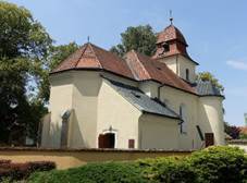 Kostel sv. Mikuláše Uprostřed návsi na hřbitově, ze 14.