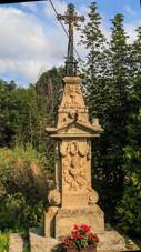 1861 Železný kříž 1843. S bohatě reliéfním podstavcem na rozcestí Chotěšiny – Voděrady proti č.p.33 původně s vázami