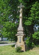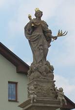 s reliéfem sv.Jana Nepomuckého Na kostele 1605 Památník