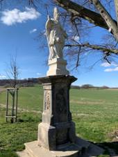v poli východně od vsi, na podstavci s reliéfy sv. Václava, sv. Jana