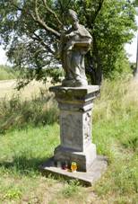 1775 s reliéfy sv.(?), sv.Vojtěcha a sv.Jiří na podstavci Socha