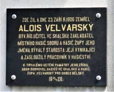 deska Aloise Velvarského Na č.p.66, starosta a řídící učitel Zámek