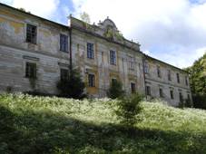 přestavěna renesančně 1541, barokně 1713 na čtyřkřídlý zámek, zanedbaný,