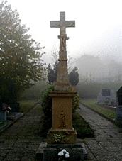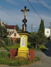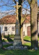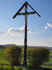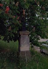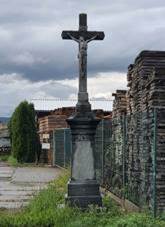 Kamenný kříž u vchodu na hřbitov. Autor František
