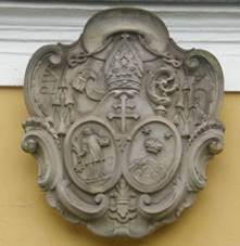 1971 nový dřevěný kříž Erb Nad vstupem do fary Na návsi, 1929 Za ni přistavěna nová škola [Kovárna] ... [Pazderna] ... Dům č.p.3 Řadový se štukovým průčelím
