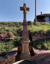 Bolestné na podstavci, kříž poškozen, 1848 Kamenný kříž Na horním severním kobci vsi Železný kříž Před hřbitovem, 1898