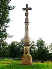 Kamenný kříž U lesa východně od vsi, s reliéfem P.Marie