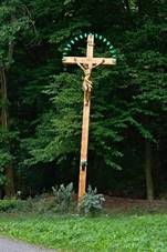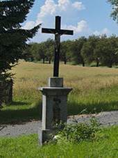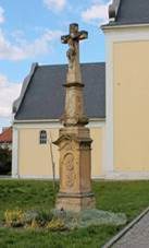 století v gotickém slohu. Přestavěn 1804. Kalvárie 1700, s pilátovým domem Kostel Povýšení sv.Kříže Na