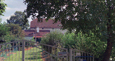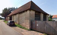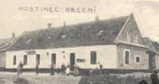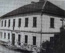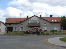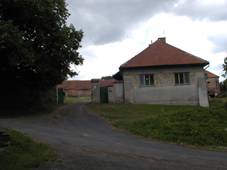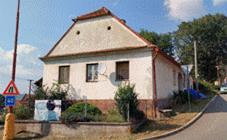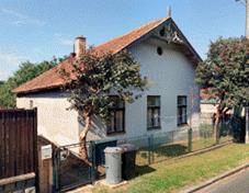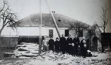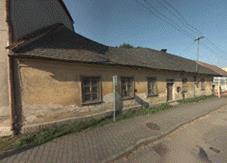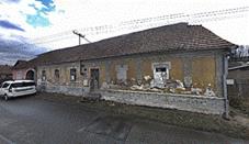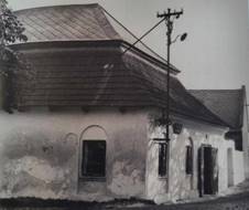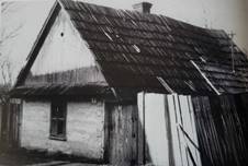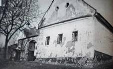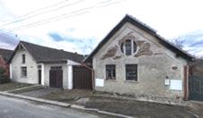 Druhá vpravo od kostela s malbou…., malba zničena při