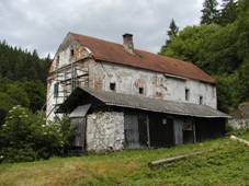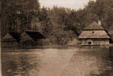 chata, rybník nad mlýnem vysušen