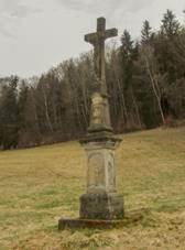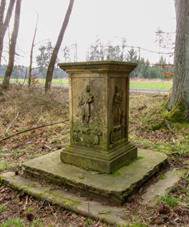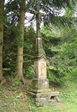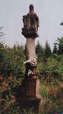 s reliéfy sv.Václava, sv.Jana Nepomuckého a sv.Barbory, 1713 Socha [Nejsv.Trojice] Je podstavec jižně od vsi v lese poblíž lichtenštejnského