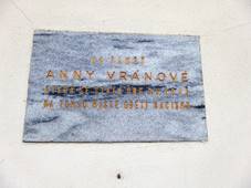 straně hradiska na tzv. Skalce Pamětní deska Anny Vránové, zabité 9.5.1945, na