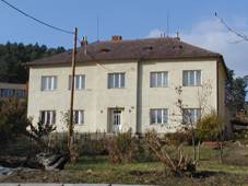 s vodním příkopem, dnes v místě č.p.71, zanikla po 1412. Zámek Na místě tvrze,1693-9 přestavěna na