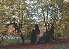 solitéry a skupinami stromů, s řadou barokních skulptur. Zbytky lípy o obvodu kmene 11,3 m |