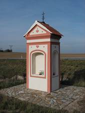 Výklenková kaplička … Zonička U rybníka vedle dřevěného kříže,