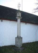 Kaple sv. Floriána 18.stol. Kaplička U silnice na Velký újezd Výklenková kaplička Severně od vsi Kamenný kříž U č.p.138. 1856, Nápis: Pochválen buď
