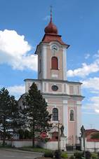 barokní, věž upravena 1831, barokní jednolodní z roku 1752 byl vysvěcen 1757,