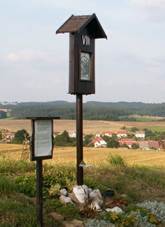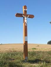 západně od vsi při křížové cestě Dřevěný kříž U silnice
