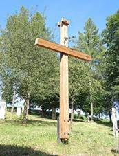 trámů z kostela v Moravské Nové Vsi poničeného tornádem v r. 2021 Dřevěný kříž U cesty na
