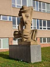 Reliéf Můzy Na budově divadla, 1986, autor František Kovařík