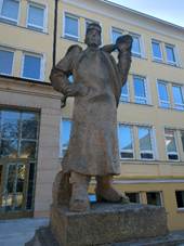 Socha Děvče z Vysočiny Na náměstí před radnicí, autor Julius Pelikán,