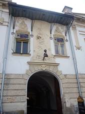 Bohatě zdobená secesní fasáda z roku 1906, vytvořená podle návrhu