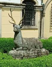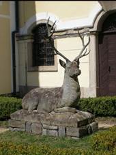 kámen Českomoravské hranici se sochou lva a orlice, v parku, 2009 Zámek
