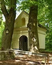 Hřbitov Vedle centra vsi Kaple Čtrnácti sv. pomocníků